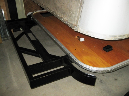 We began the process of mating the shell to the frame. Our goal this evening was to get the shell off of the saw horses and resting on the frame.