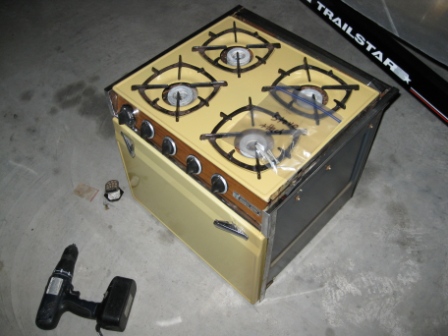 To get access to the exhaust section of the heater, stove removal was necessary. After pulling the top off of the stove, condition was such that we've decided to replace the stove.