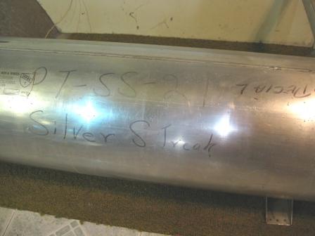The water tank is completely exposed now. Interesting tank. It is in excellent condition on the outside. I hope for the same on the inside. Writing on the tank is "PT-SS-21", "Silver Streak", and "Special".